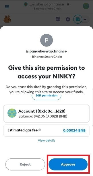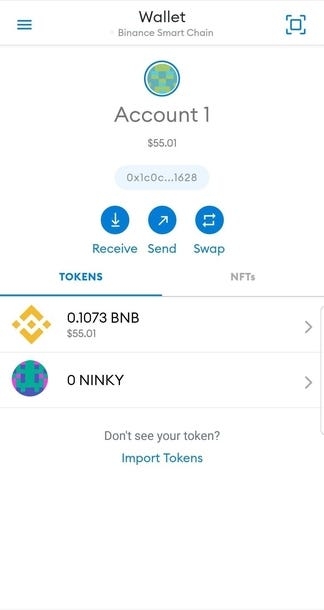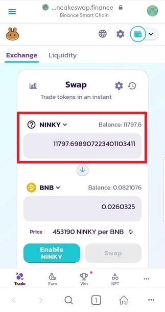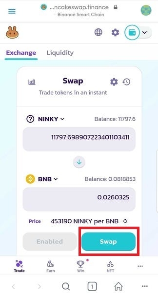 (or vice versa, if you want to swap BNB to NINKY)