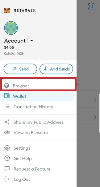 Click on the “Brower’ button in your Metamask wallet.