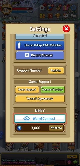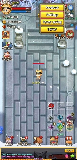 9. Click the ‘Settings’ button in Idle Ninja Online.