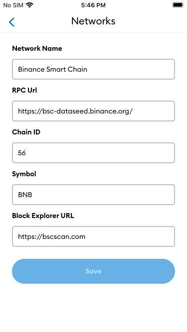 Network Name: Binance Smart Chain RPC Url: https://bsc-dataseed.binance.org/ Chain ID: 56 Symbol: BNB Block Explorer URL: https://bscscan.com/ Then click on the ‘Add’ button.