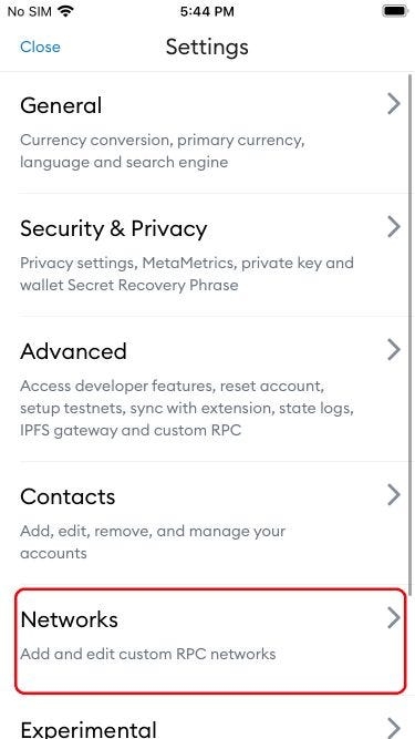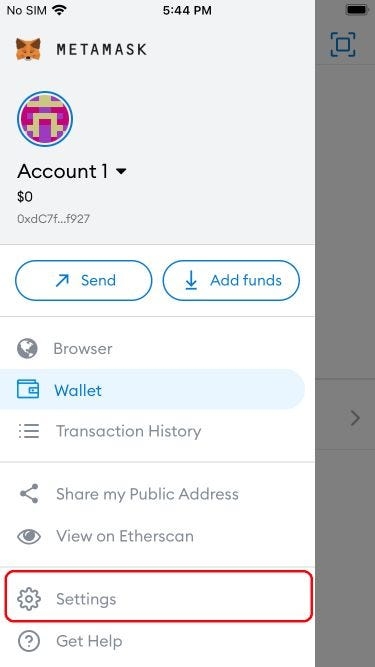 10. Click the ‘WalletConect’ button at the bottom of Settings.